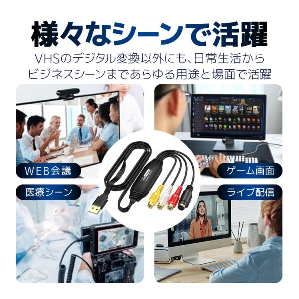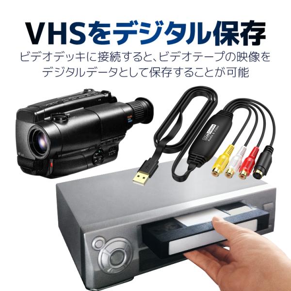 Windows/Mac対応 USB接続ビデオキャプチャー 1080P解像度 VHSをデジタル動画データに変換 USBキャプチャ ダビング ビデオテープ 8mmビデオ デジタル化 MAVCX7