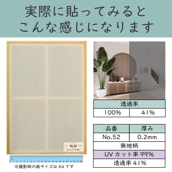 ワーロンシート(白無地) 破れにくい 強化障子紙 厚み0.2ミリ× 幅930ミリ×高さ1850ミリ ワーロン No.52 / 1枚