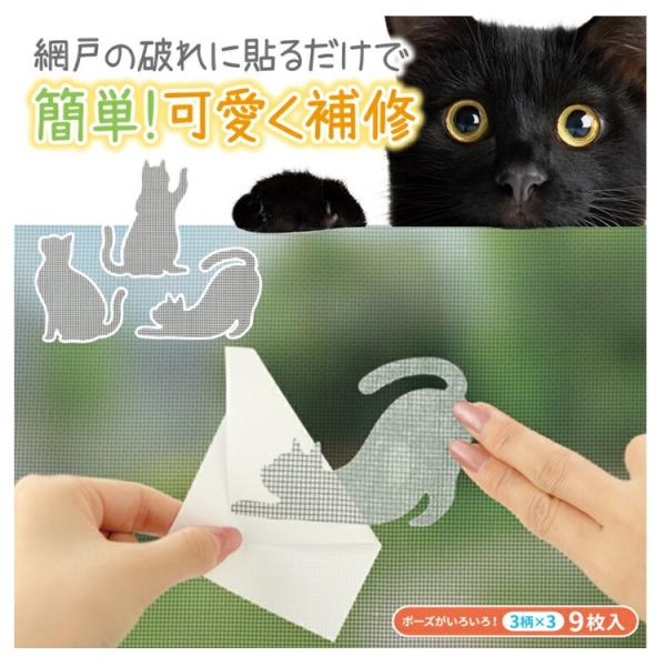 網戸補修 テープ 網戸の補修シール 9枚入 網戸穴 網戸補修 網戸破れ 網戸パッチ 粘着 網戸修復 補修シート 穴塞ぎ 網戸修復シール 網戸補修テープ メール便