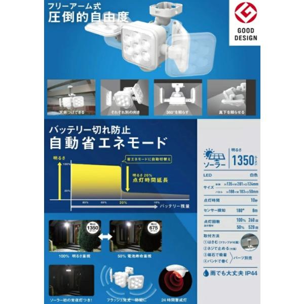 5W×3灯 フリーアーム式LEDソーラーセンサーライト S-330L ライテックス