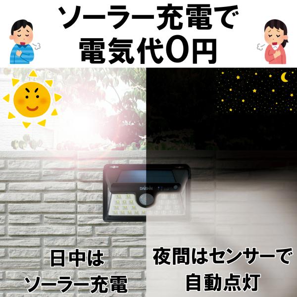 大進 センサーライト 人感 屋外 ソーラー ライト マグネット DLS-NWL002 LED 明暗センサー 磁石 防犯 明るい 駐車場 野外 壁 防水規格 防雨型