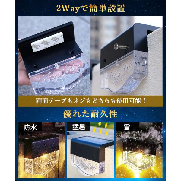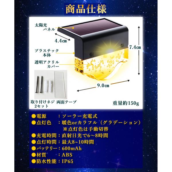 ソーラーライト 2個セット 波形 バブル フェンスライト 照明器具 ガーデンライト 階段 暖色 キャラメル色 屋外 自動点灯 デッキライト 防水 LED(A124)