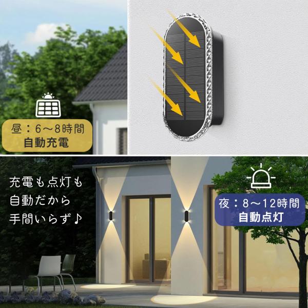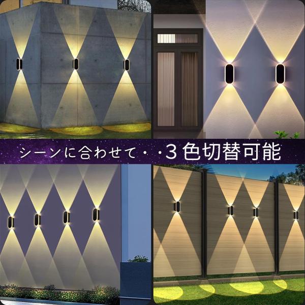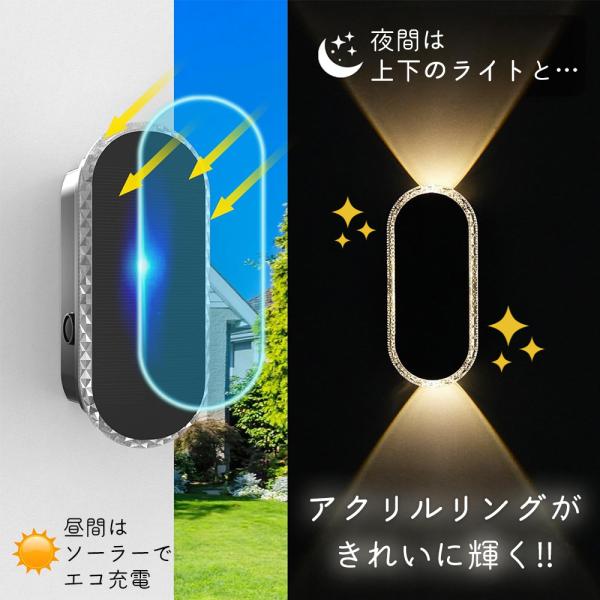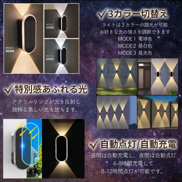 ソーラーウォールライト 2個セット LED屋外照明 アクリルリング搭載 3色切替 自動点灯 自動充電 IP65防水 高輝度 壁掛けライト 玄関 庭 防犯 A211