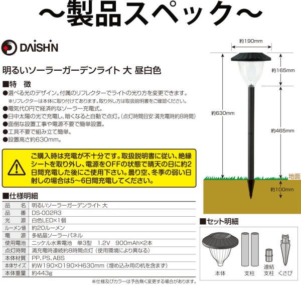 大進 明るいソーラーライト 大 2本セット ガーデニングライト 太陽光ライト 工事不要 電球色 昼白色 庭 ガーデン ソーラー充電式 夜間自動点灯 屋外