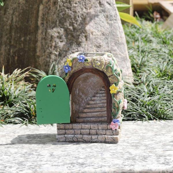 ガーデンライト 妖精のドア オーナメント 太陽光 置物 かわいい 庭 インテリア アソーラーLED エルフ ステップ ツリー 即納