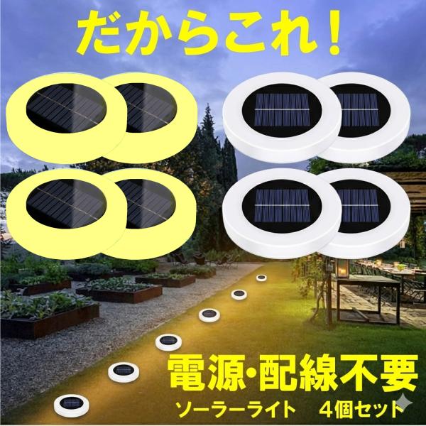 ソーラーライト 屋外 LED ガーデン 防水 4個セット シームレスタイプ 庭 イルミネーション センサーライト 防犯 花壇 円形 おしゃれ 明るい 置き型 ポイント消化