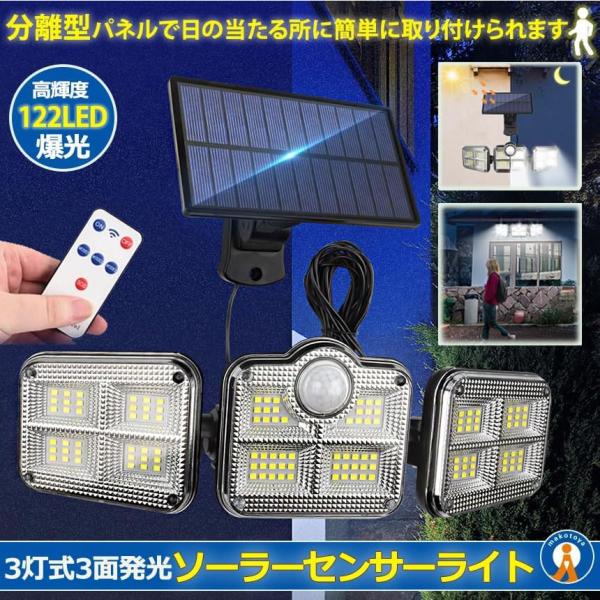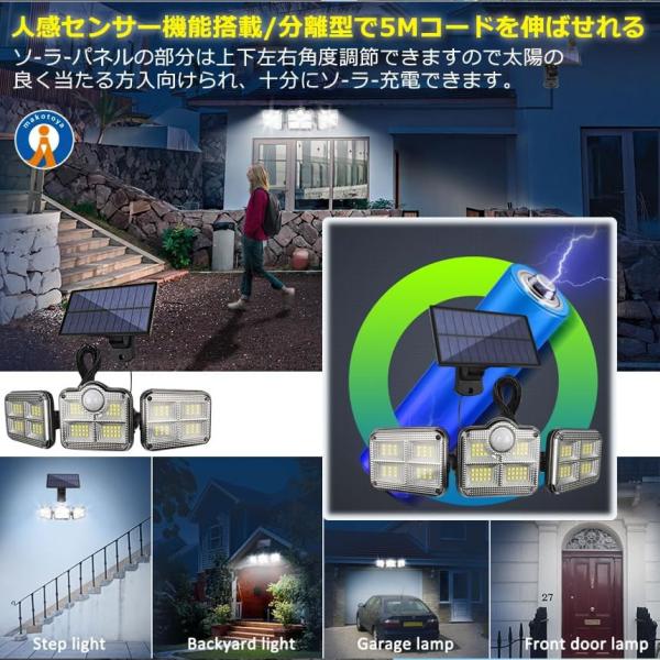 ソーラーライト屋外 分離 防水 LED 太陽光充電 人感センサー 自動点灯 センサーライト 防犯 3モード点灯 3面発光 玄関 駐車場 ガーデンライト SENSARAT
