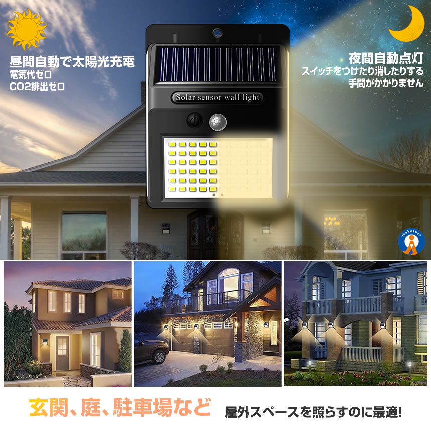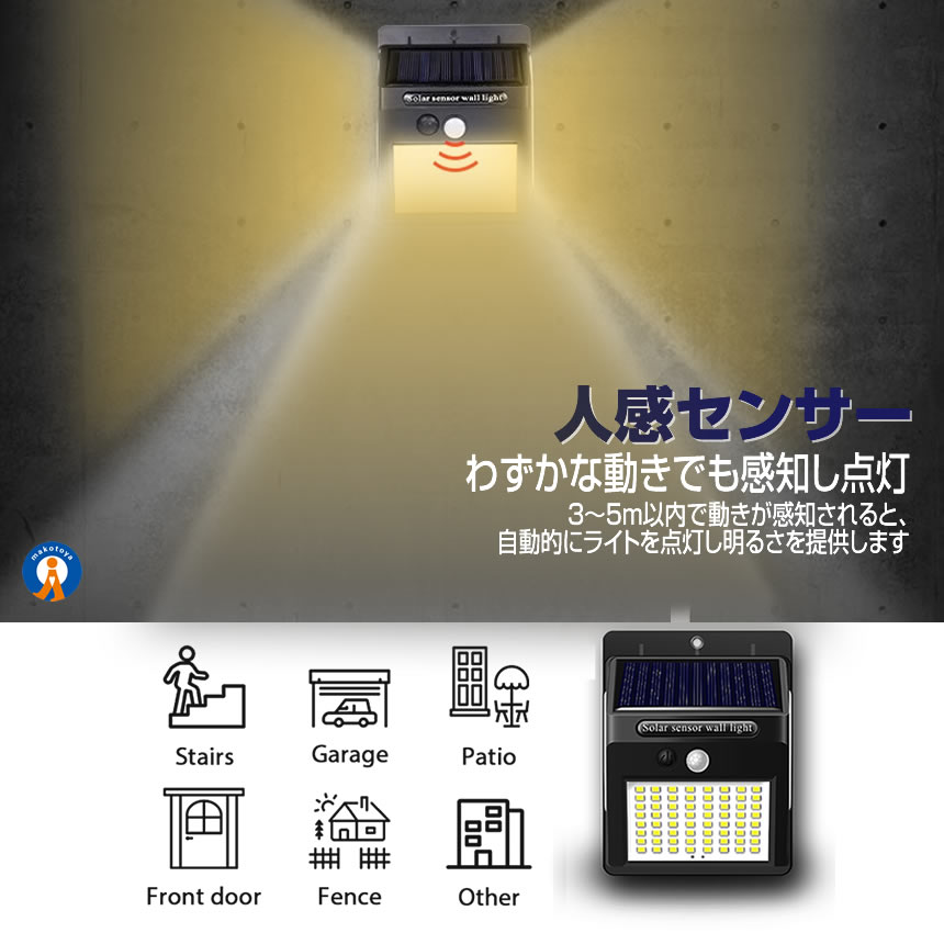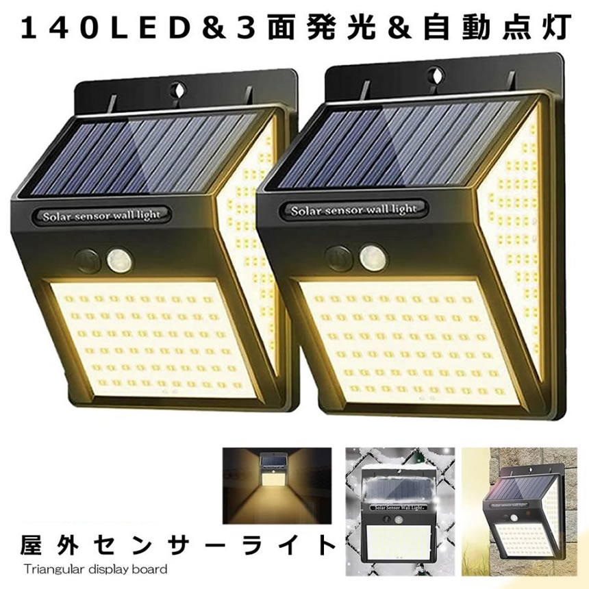 ソーラーライト屋外 2個セット 人感 センサーライト 暖色 140LED 明るい 3面発光 充電 自動点灯 取付簡単 耐水 耐熱 耐凍 高輝度 省エネ コンパクト 屋外 DANSEN