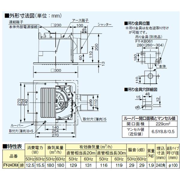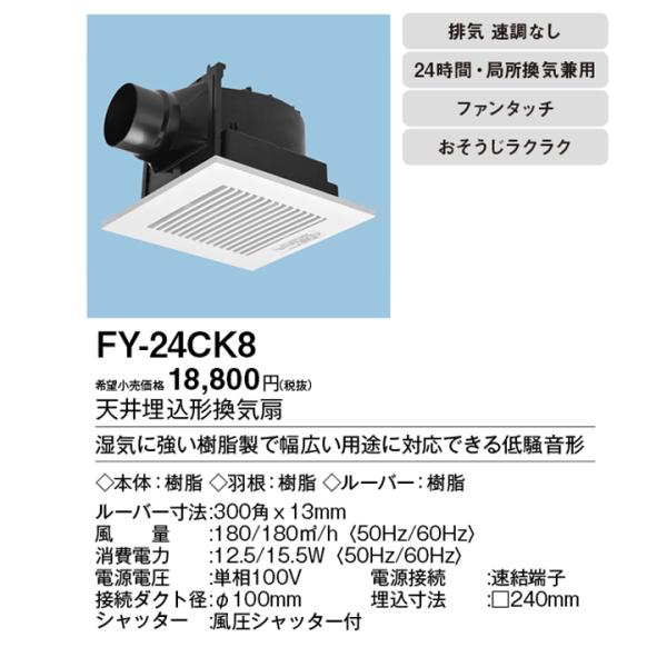 【FY-24CK8】パナソニック 天埋換気扇(低騒音形・ルーバーセット) 排気 低騒音・大風量形 樹脂製本体 ルーバーセットタイプ panasonic