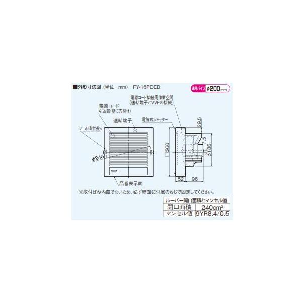 パイプファン 排気 パナソニック Panasonic [FY-16PDED] 電気式シャッター 速結端子付