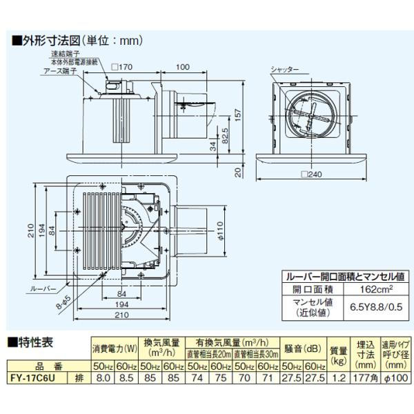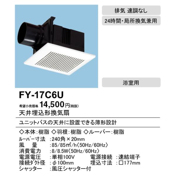 【FY-17C6U】パナソニック 天井埋込形換気扇(FY−14BP用買い替 排気 低騒音形 (ユニットバス用) 樹脂製本体 ルーバーセットタイプ panasonic