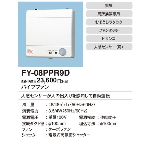 【FY-08PPR9D】パナソニック パイプファン 排気 ターボファン 壁・天井取付 角形インテリアパネル形」ピタンコ」 自動運転形 人感センサー 速結端子付 panasonic