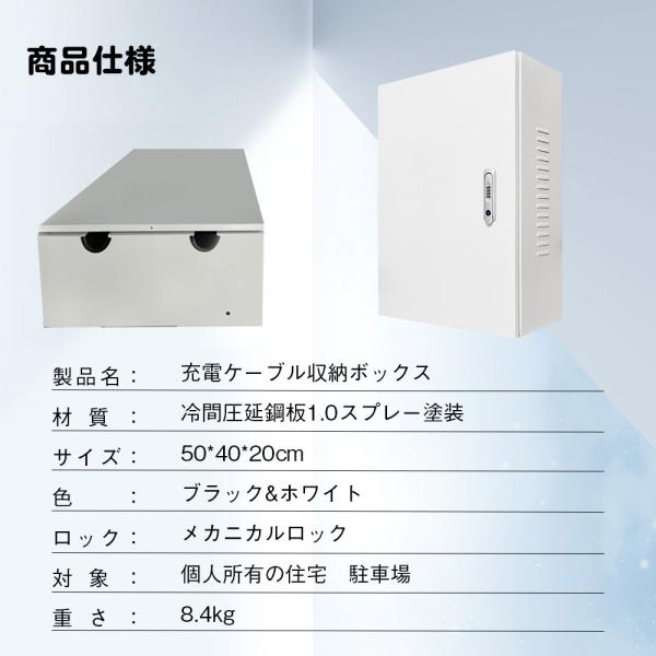 EV・PHEV用 充電ケーブル コンセント 収納ボックス スイッチ付 電気自動車 防水 大容量 通気口 底面穴加工あり 盗難防止 40*50*20cm 2色選択 鋼鉄王