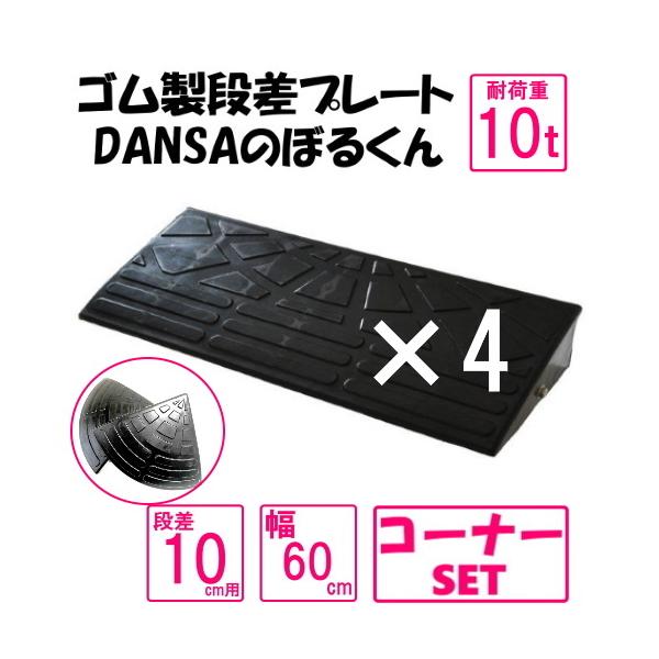 ゴム製段差プレート 【送料無料】 「DANSAのぼるくん」 段差10cm用スタンダードタイプ 間口2.9m対応 お得な4個+両コーナーセット 耐荷重10t