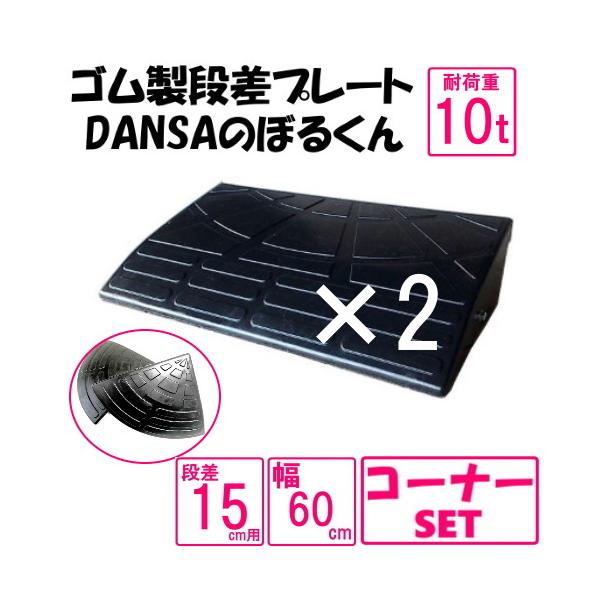 ゴム製段差プレート「DANSAのぼるくん」【送料無料】段差15cm用 幅60cm 耐荷重10t 2個+両コーナーセット 間口1.8m対応 ゴム製 15-60×2+両コーナー