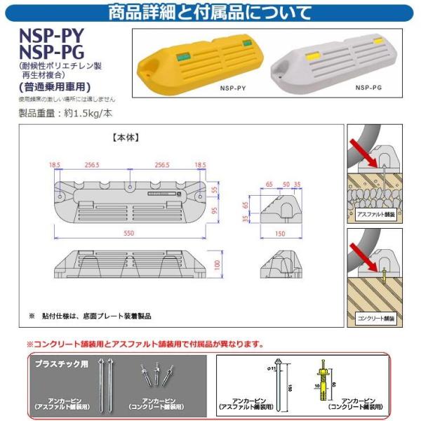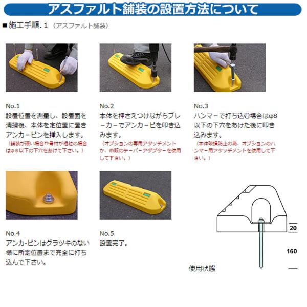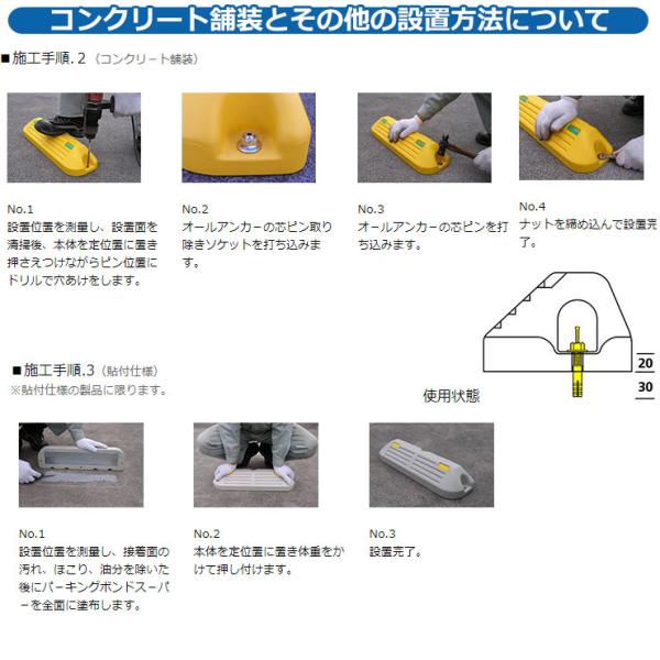 車止め パーキングブロック(カーストッパー) プラスチック製 幅550mm高100mm 専用アンカーピン付き 2個セット