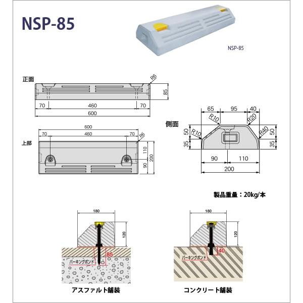 車止め 置くだけ NSP-85 駐車場 送料無料 コンクリート製パーキングブロック(カーストッパー) 低車高タイプ 専用ピン付き 2個セット