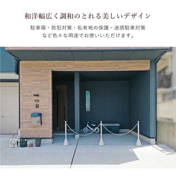 スマートチェーンポール 5本セット ホワイトシルバー 1.5m or 2mチェーン4本付き / 駐車場 チェーンスタンド sf-83-ws-5set