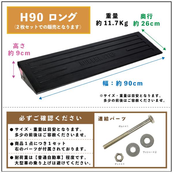 【送料無料】ラバーステップH90ロング幅タイプ 2枚セット [昭光物産 駐車 段差 解消 安い スロープ ゴム]