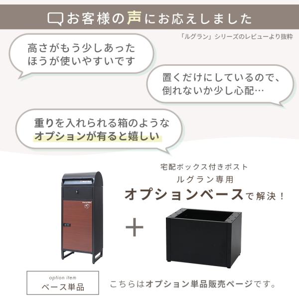 宅配ボックス オプション ベース ルグラン 専用 ポスト 台座 単品 高さ19cm 工具 工事 不要 転倒 盗難 防止 重り 重石 ブラック ヤマソロ