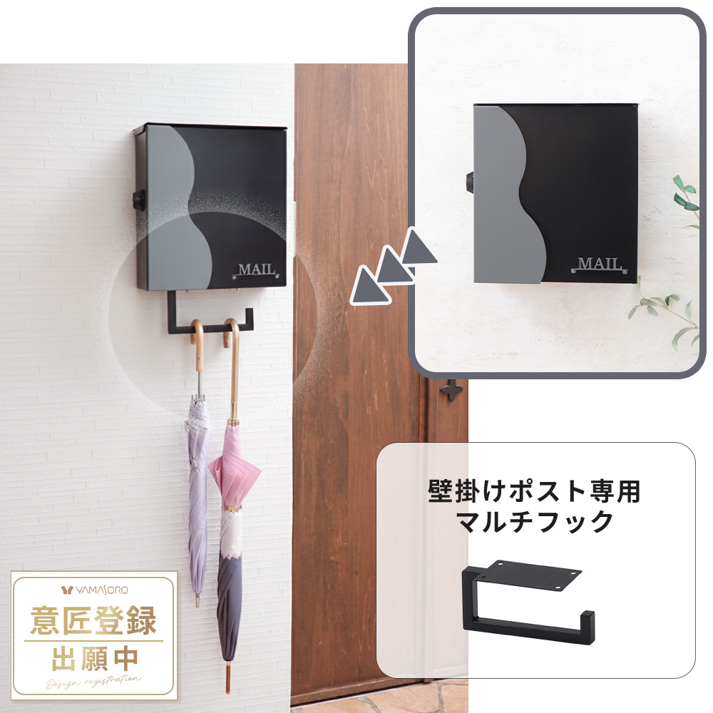 エントランス フック マルチ 玄関 傘掛け スチール 傘置き ブラック 鞄 袋 ガーデニング 掃除 用具 黒 新築 DIY グラヴォ Gravo ヤマソロ