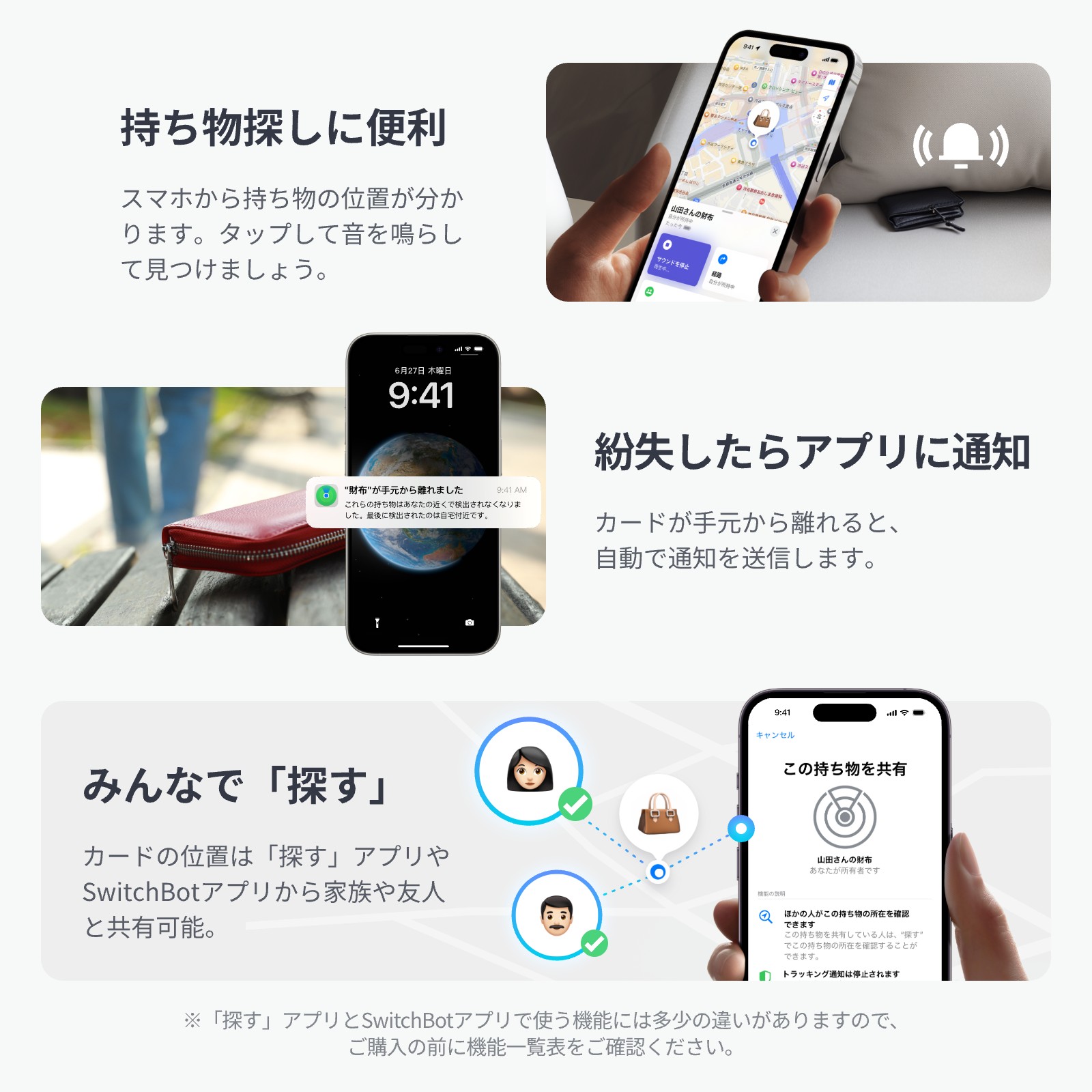 【4役を1枚に】SwitchBot スマートトラッカー カード Appleの「探す」に対応 紛失防止タグ スイッチボット 超薄型 IP67防水 小型 軽量 スマートタグ 忘れ物防止
