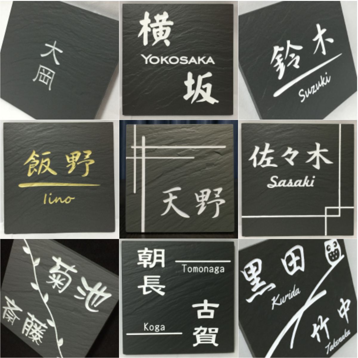 150角 玄昌石風表札 「黒」 タイル表札 デザイン表札 おしゃれ 和風 番地 戸建て マンション用 二世帯住宅 彫刻 正方形 追加マグネット可