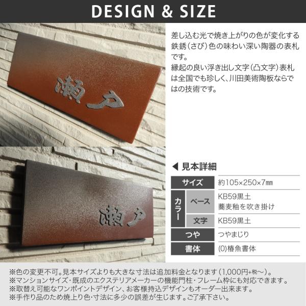 川田美術陶板 表札 おしゃれ 陶器 陶板 戸建 おすすめ 侘び寂び 泉椿魚 和風 凸文字 重厚感 川田美術陶板 W2 利休
