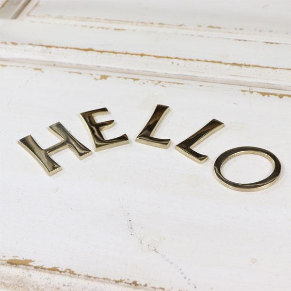 真鍮 ゴールド 45mm HELLO セット 大文字 H E L L O レター 真鍮 レター ナンバー 大文字 アルファベット 看板 表札 ネーム ツリーハウス ネコポス メール