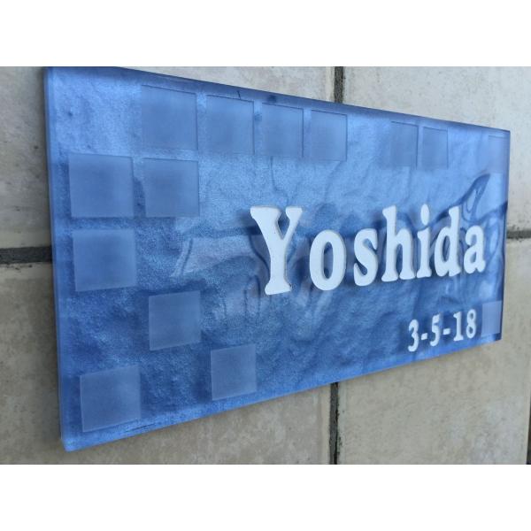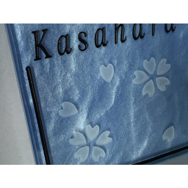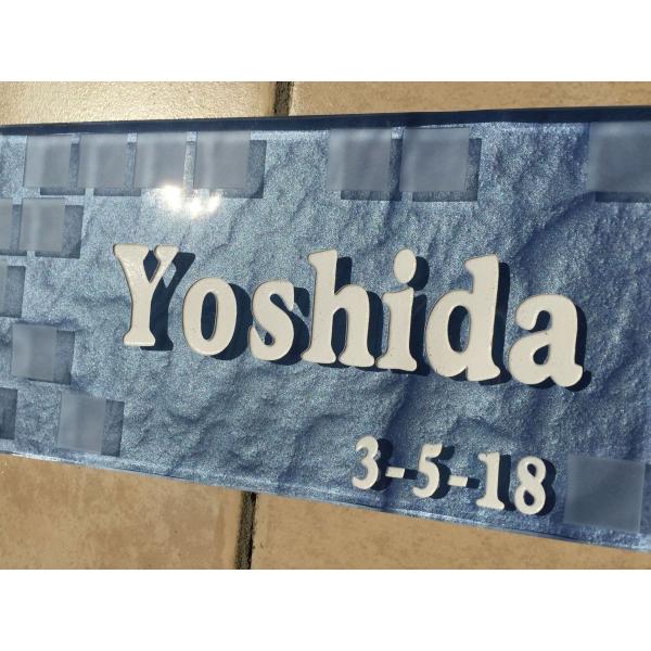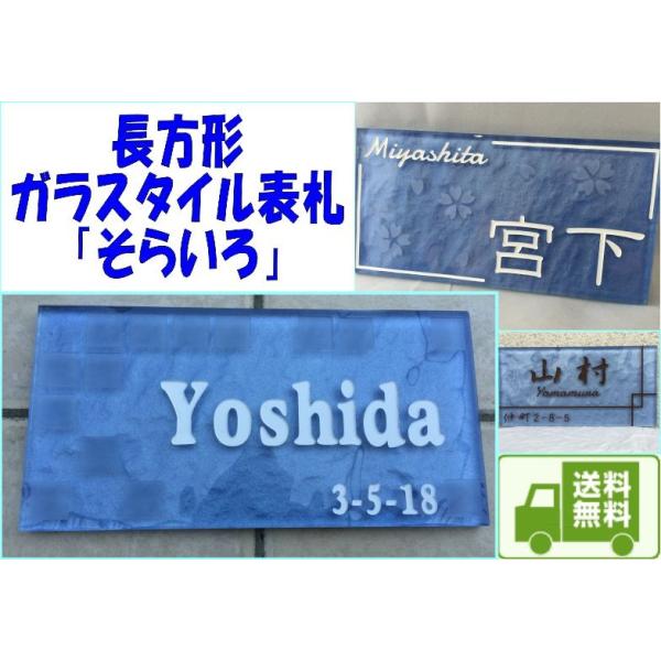 ガラスタイル表札 「そらいろ」 ガラス表札 デザイン表札 送料無料 おしゃれ ブルー系 ネームプレート 長方形 戸建て 二世帯住宅