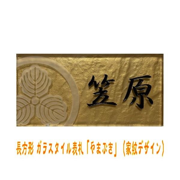 【家紋デザイン】 200x100角 ガラスタイル表札 「やまぶき」 デザイン表札 送料無料 おしゃれ 戸建て 長方形 ブラウン系 伝統