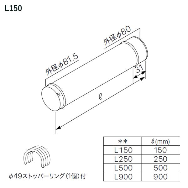 【0500934】【φ80直管A L150】ノーリツ 部材 熱源機関連 OH-G用 給排気延長 φ80直管A L150 NORITZ