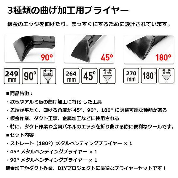 板金曲げ加工用プライヤーセット 3本組 ストレート・45°・90°対応 ODGT1-B274
