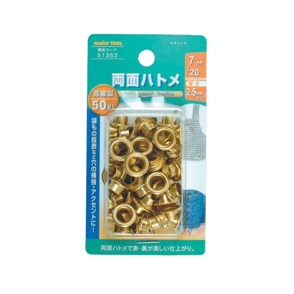 イチネンアクセス ツール事業部 FAMILY TOOL(ファミリーツール) ハトメ 両面ハトメ 真鍮製 50組入 51353 7mm(#20)