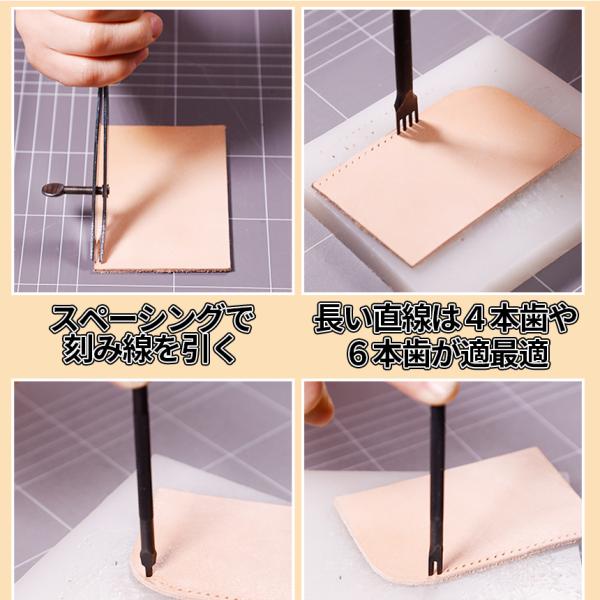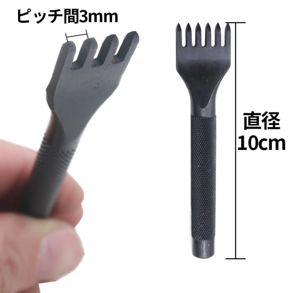 菱目打ち ピッチ 3mm 4本 セット レザー クラフト 革 細工 黒 ポンチ 丸形 ヒシメ 打ち 皮革 レザーポンチ 縫い穴 1本歯 2本歯 4本歯 6本歯 工具 DIY KAWAPON4