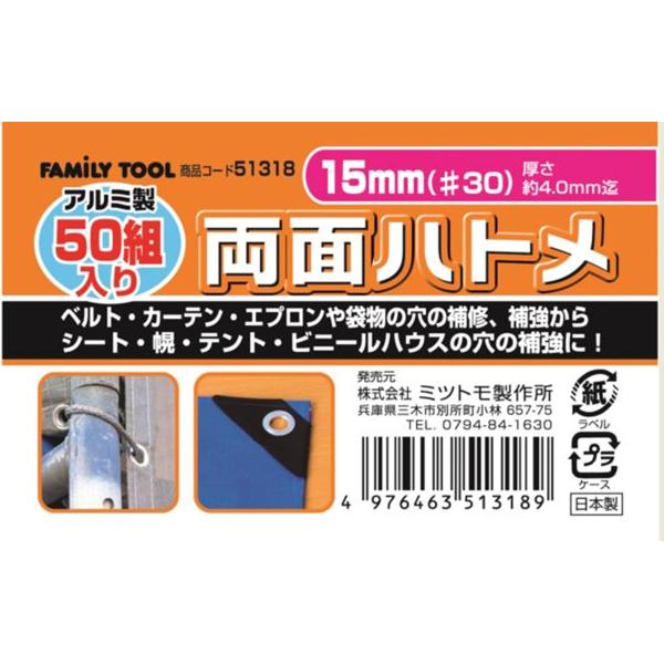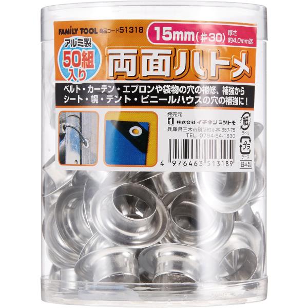 イチネンアクセス FAMILY TOOL(ファミリーツール) 両面ハトメ アルミ 15mm×50組 51318 15mm(#30) アルミ製