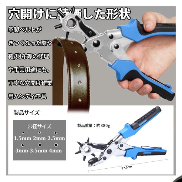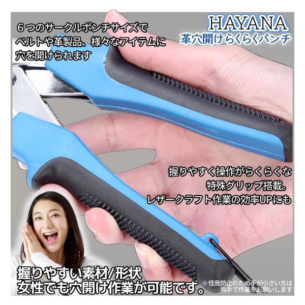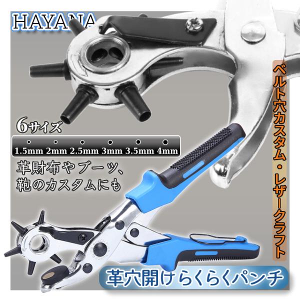 穴開け レザー パンチ ベルト 穴あけ 穴 回転式 1.5-4mm 6サイズ 丸穴 革 レザークラフト ハンドメイド 財布 鞄 靴 ベルト穴 ポンチ ホール DIY 工具 HAYANA