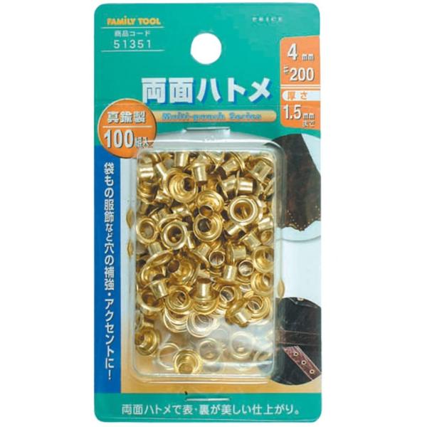 イチネンMTM FT 両面ハトメ玉 真鍮製 100組入 4mm 51351 ネコポス対応