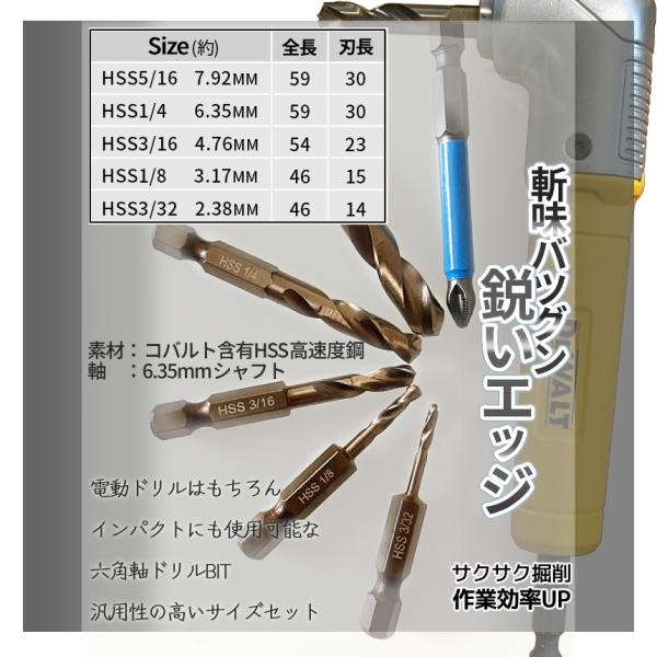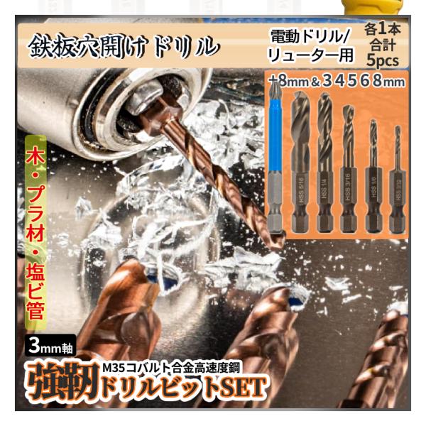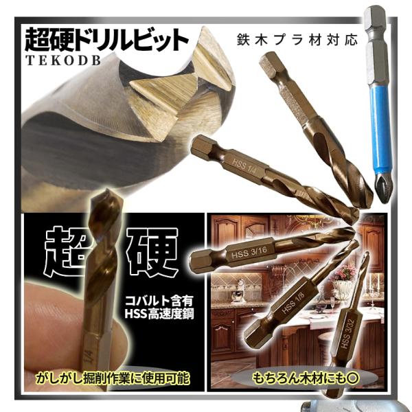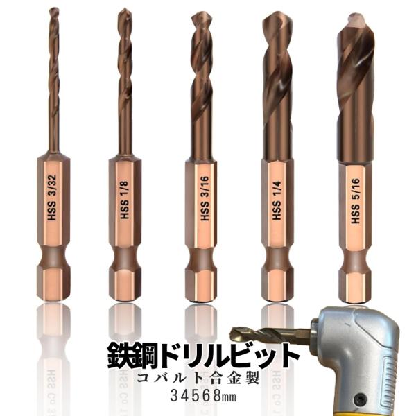 鉄工用ドリル BIT セット 超硬 コバルト合金 5/6/8/10/12mm 5本組 穴開け アルミ ボール盤 掘削 開孔 ビット 穴あけ DIY 日曜大工 ドリルビット TEKODB