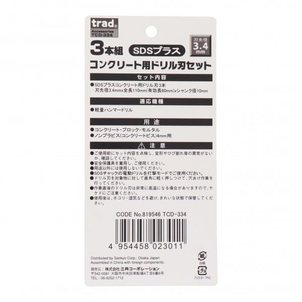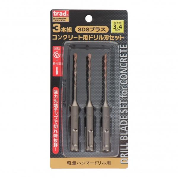 三共コーポレーション trad SDSプラス コンクリート用ドリル刃セット 3本組 3.4mm TCD-334 3本