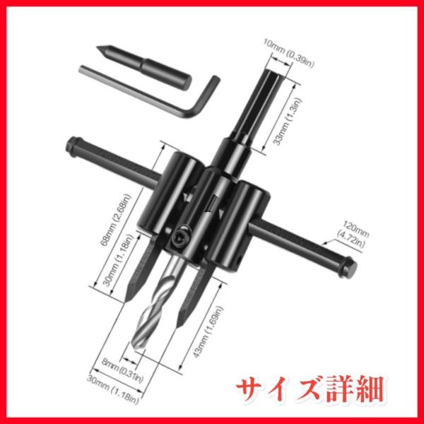 【木工対応】サークルカッター 穴あけ 円型 ホールソー 電動ドリル用 円切り工具 HSS鋼 30〜120mm 調整可能 石膏ボード PVCボード対応
