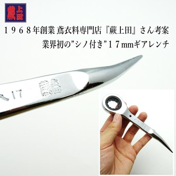 【ギアレンチ】蕨上田 特注 ギアレンチ 17mm シノ付きギアレンチ 総磨き ミラー仕上げ 極短 作業工具