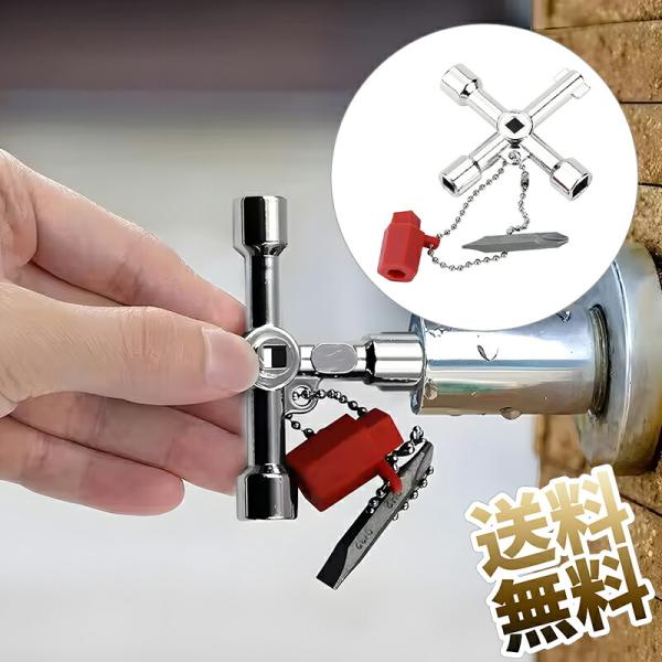 4ウェイレンチツールユーティリティキー 水栓キー 水栓鍵 水道 蛇口 水 栓スパナ 共用水 栓カギ 十字 四角