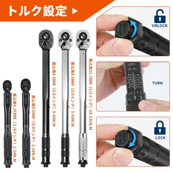 トルクレンチ タイヤ交換 自動車 車 工具 プリセットタイプ 調整範囲 5-60N・m 3/8インチ 1/4/変換ヘッド 45ギア CR-V材質 専用ハードケース付 ブラック