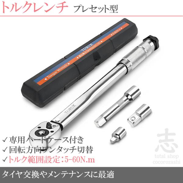 トルクレンチ タイヤ交換 自動車 車 工具 プレセット型 調整範囲 5-60N・m 3/8インチ 1/4/変換ヘッド 45ギア CR-V材質 専用ハードケース付 ホイール交換