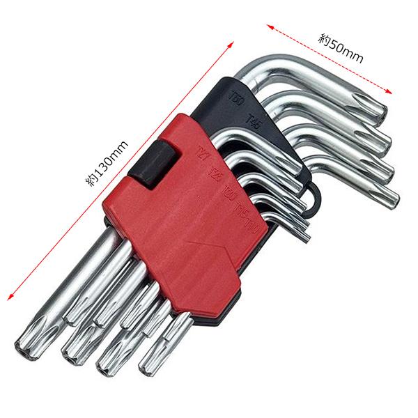 ショートタイプ 9pc L型いじり止めオフセット トルクスレンチ セット YZB040
