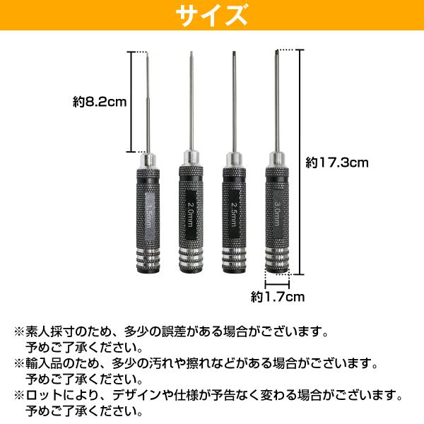六角レンチ ドライバー 1.5mm 2.0mm 2.5mm 3.0mm 4本セット 高硬度 アルミ製 工具 ネジ締め付け トルクスドライバー