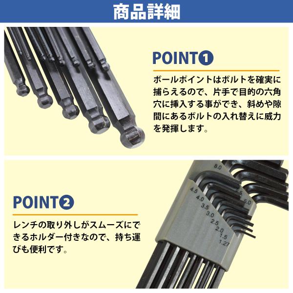 13本 セット ミリサイズ 1.27-10 六角 レンチ 棒 ハーレー 輸入車 アメ車 L型 ホルダー付 ボールポイント ねじ ビス ロング