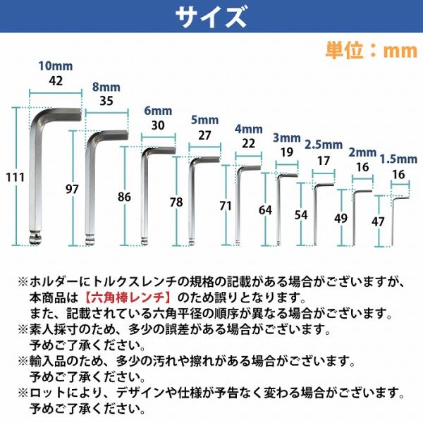 L型 六角 レンチ ボールポイント ホルダー付 1.5mm/2/2.5/3/4/5/6/8/10mm 9本セット ショートタイプ ホロー 六角棒 6角 工具