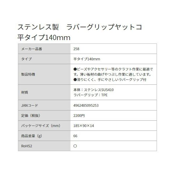 アネックス ステンレス製 ラバーグリップヤットコ No.258 平タイプ140mm 商品重量66g ANEX 兼古製作所 095253 ネコポス可 '